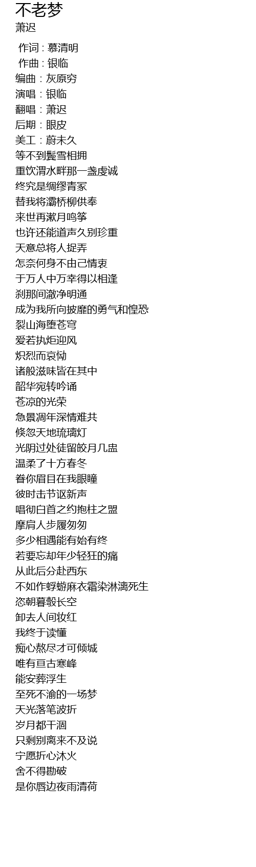 | [02:45.75] | 不如作蜉蝣麻衣霜染淋漓死生 |
