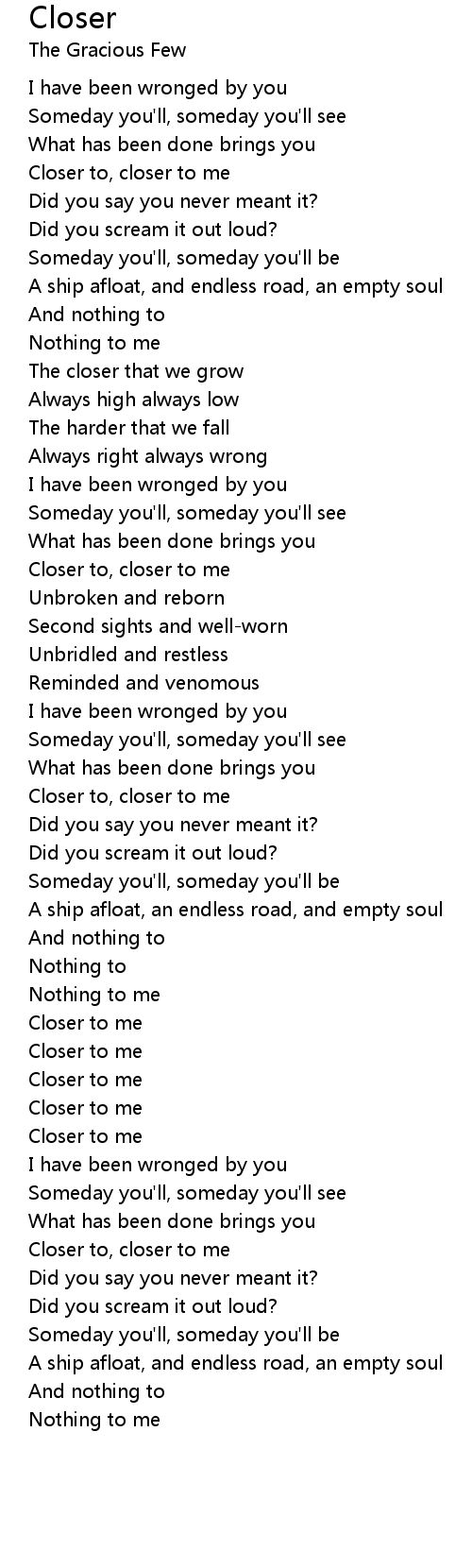 Closer to, closer to me |