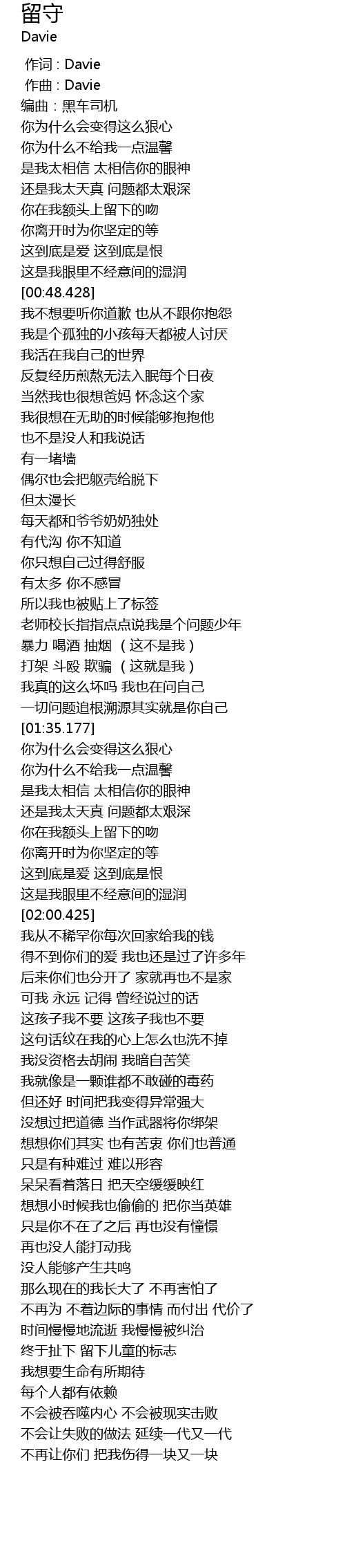 | [00:00.000] | 作词 : Davie |