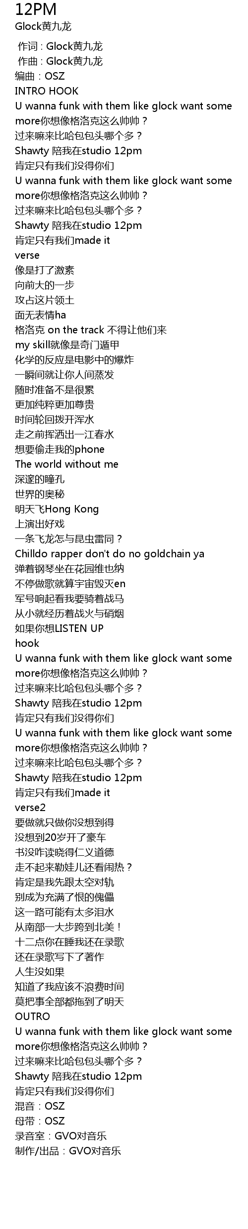 | [00:00.000] | 作词 : Glock黄九龙 |