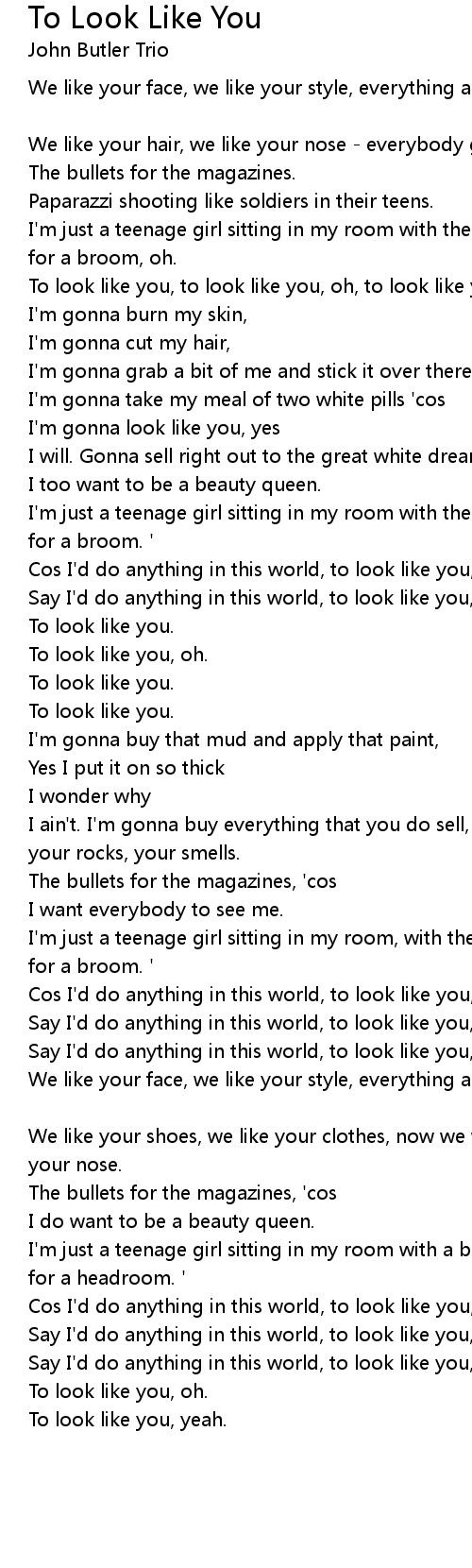To look like you, to look like you, oh, to look like you. |