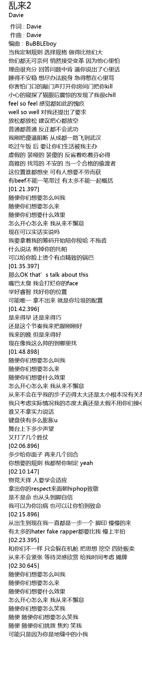 | [00:01.150] | 编曲:BuBBLEboy |
