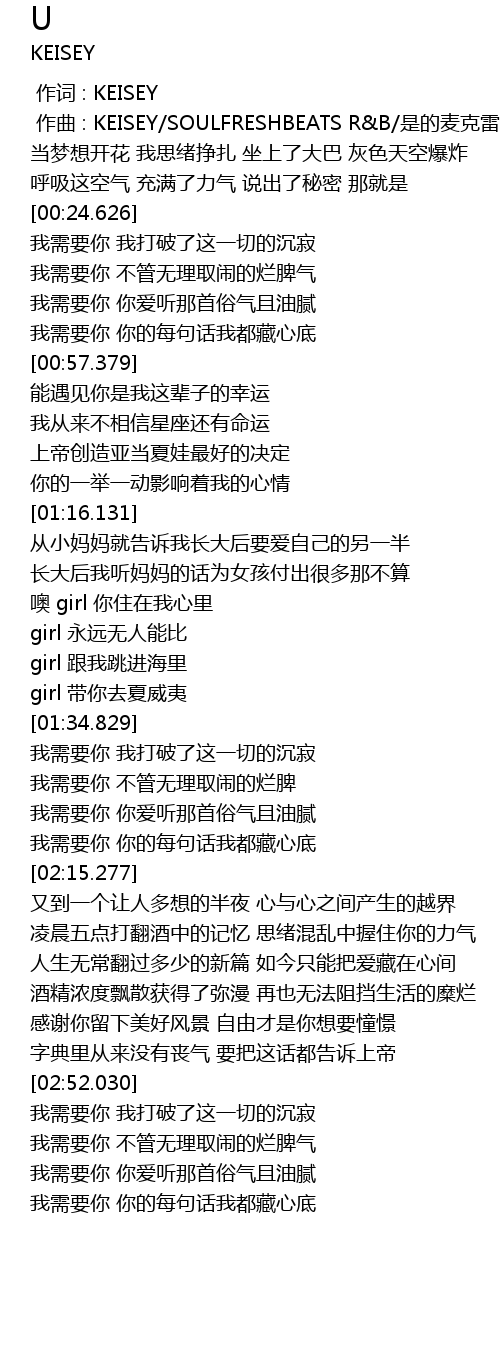 | [00:54.629] | 我需要你 你的每句话我都藏心底 |