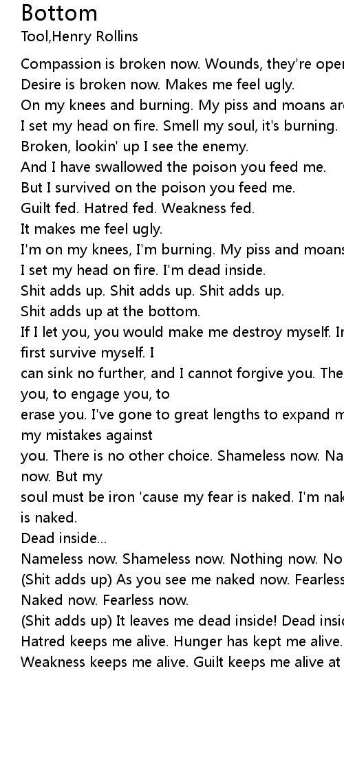 | Weakness keeps me alive. Guilt keeps me alive at the bottom. |