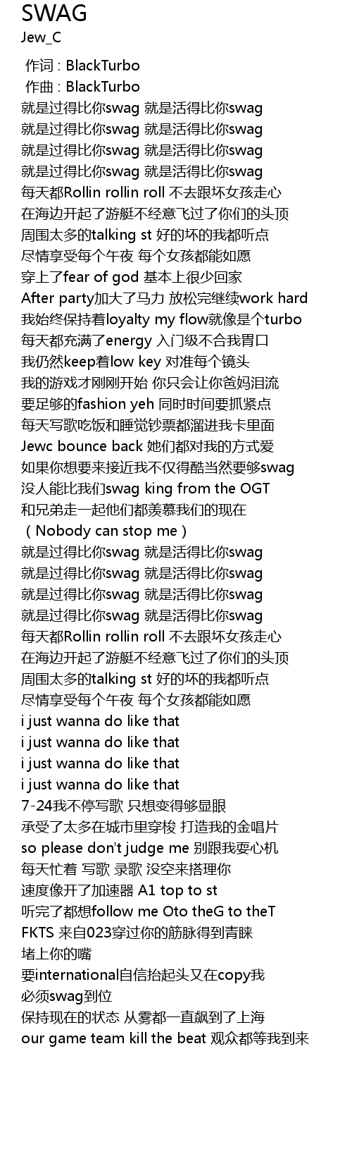 | [01:37.925] | jiu shi guo de bi ni swag jiu shi huo de bi ni swag |