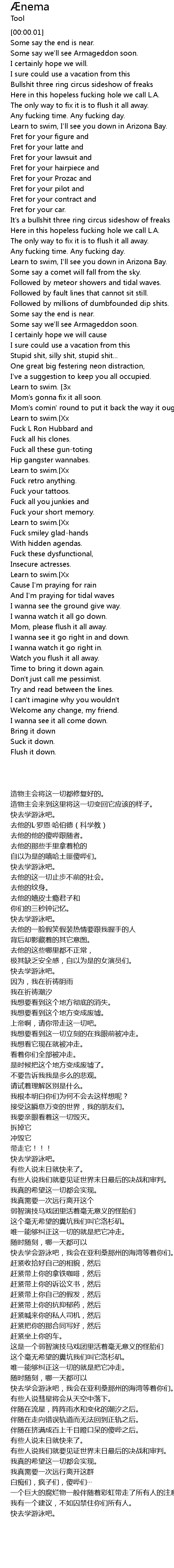 | [00:21.58] | Some say the end is near. |