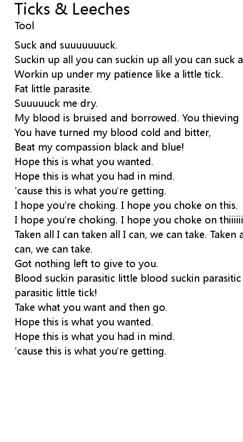 | Blood suckin parasitic little blood suckin parasitic little blood suckin parasitic little tick! | |