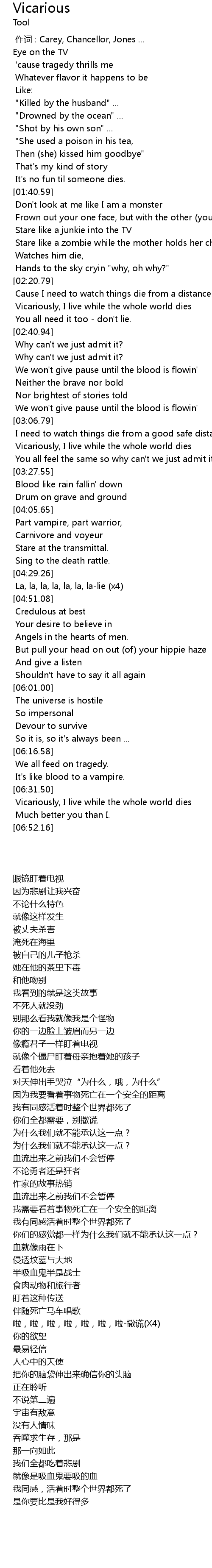 | [06:33.73] | Vicariously, I live while the whole world dies |