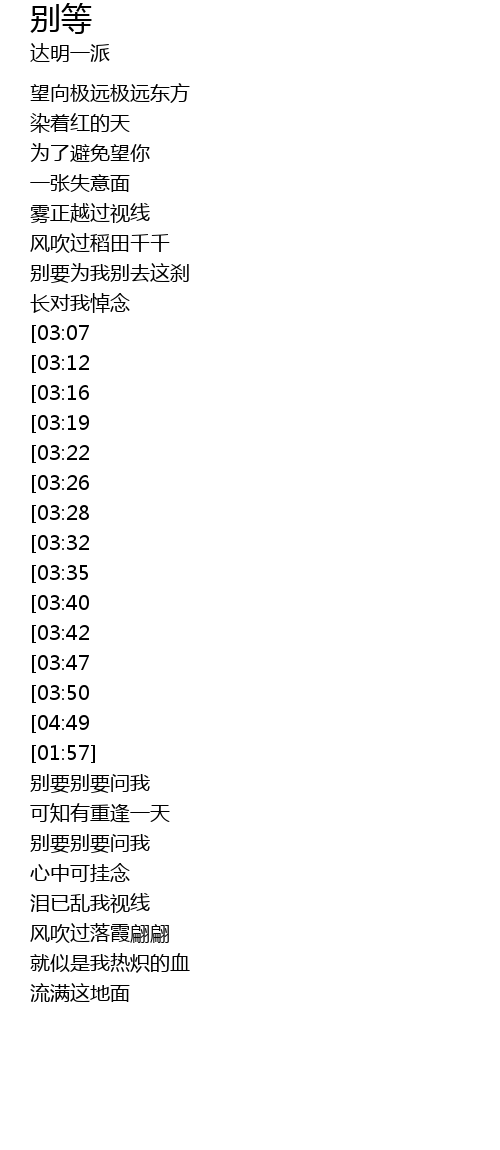 | [01:43][03:42][04:10][04:38] | 别要为我等候 |