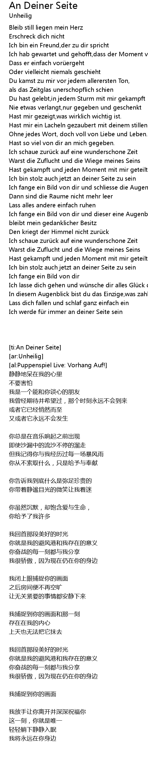 | [01:26.00] | Ich bin stolz auch jetzt an deiner Seite zu sein |