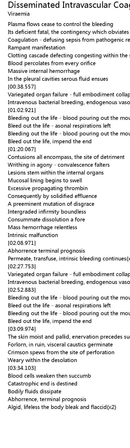 | [03:50.742] | Algid, lifeless the body bleak and flaccid(x2) |