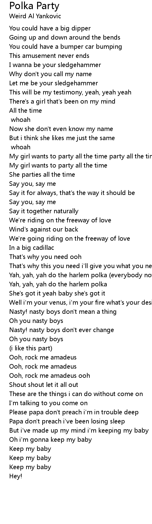 Yah, yah, yah do the harlem polka (everybody now!) |