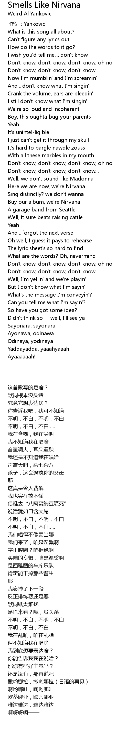 | [00:00.00] | 作词 : Yankovic |