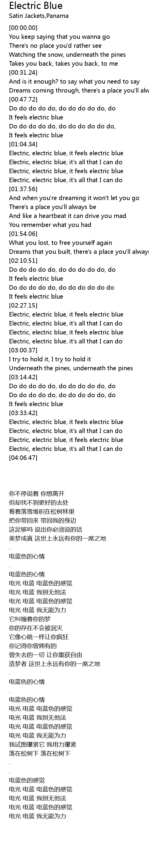 Electric, electric blue, it's all that I can do |