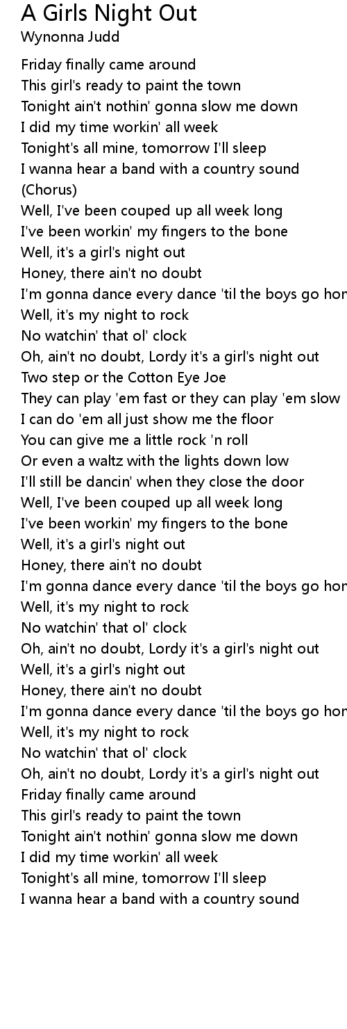 Oh, ain't no doubt, Lordy it's a girl's night out |