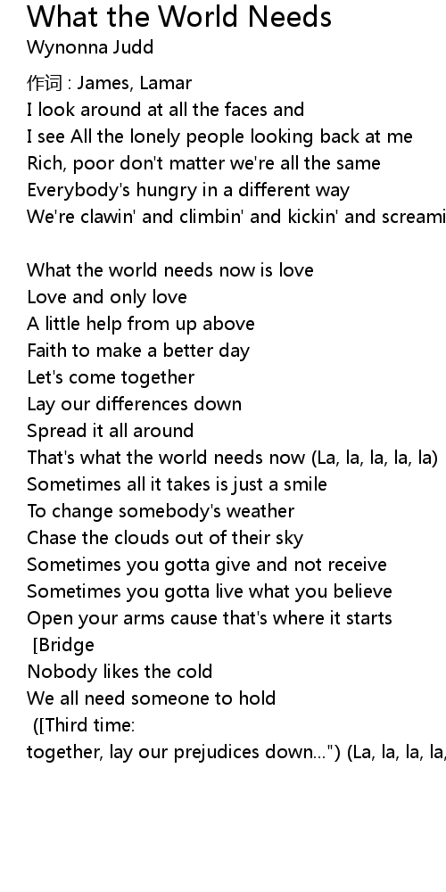 | That' s what the world needs now La, la, la, la, la | |