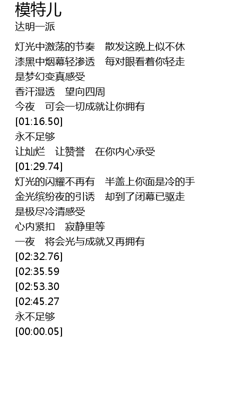 | [00:45.02] | 灯光中激荡的节奏 散发这晚上似不休 |