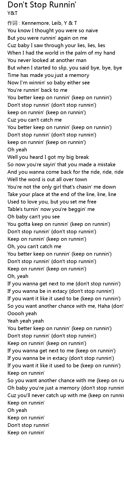 | Don't stop runnin' (don't stop runnin') | |