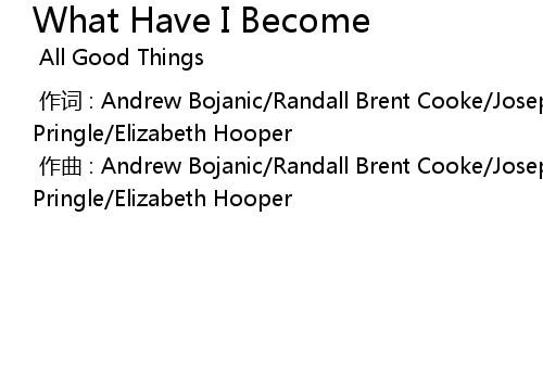 | [00:00.00-1] | 作词 : Andrew Bojanic/Randall Brent Cooke/Joseph Pringle/Elizabeth Hooper |