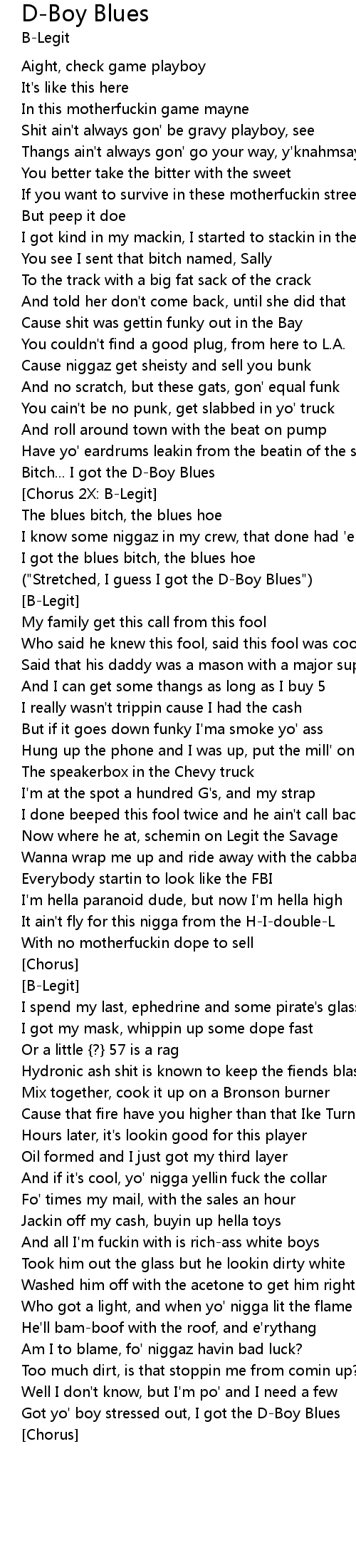 Bitch... I got the D-Boy Blues |