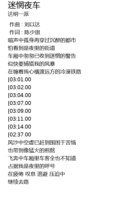 | [03:28.00][03:11.00][02:27.00][01:19.00] | 理智已失了自控 |