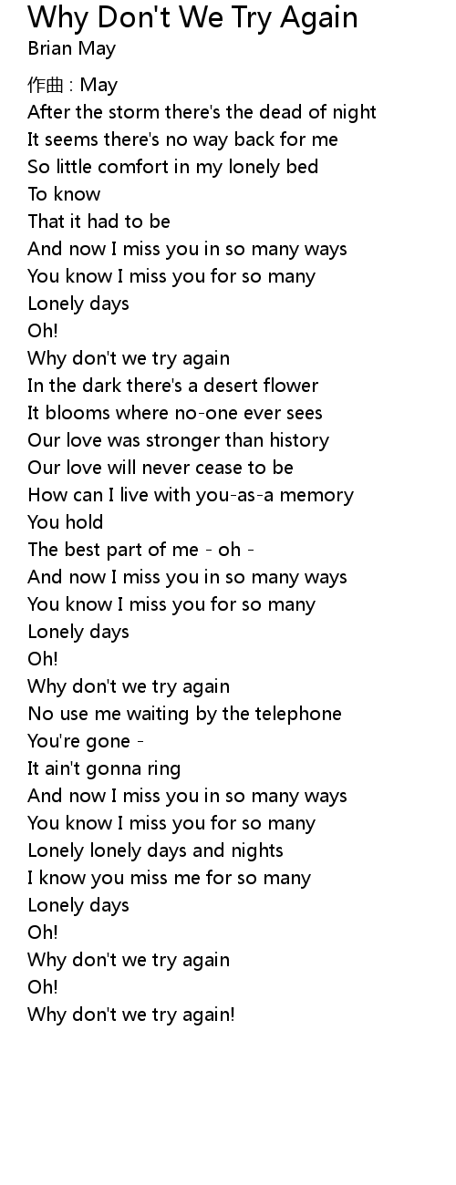 | Song | Why Don't We Try Again |