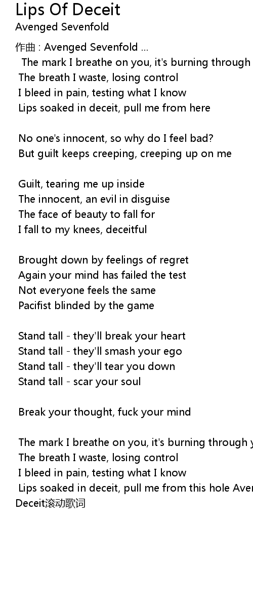 | Lips soaked in deceit, pull me from this hole Avenged Sevenfold Lips Of Deceit gun dong ge ci |