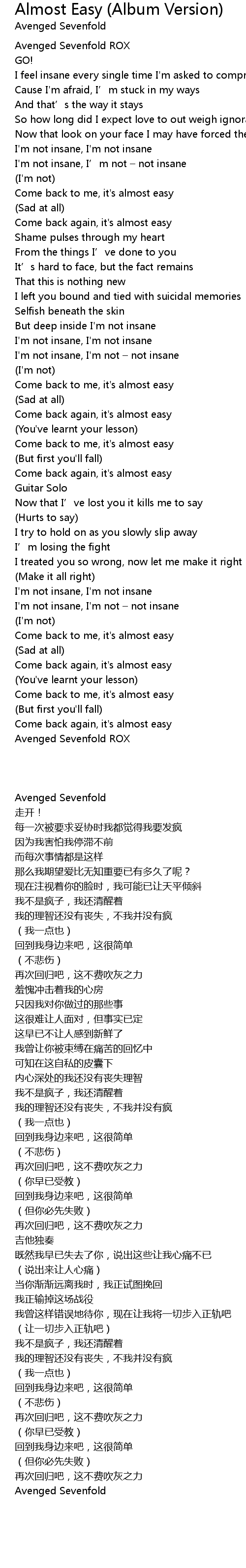 | [00:55.45] | I'm not insane, I’m not – not insane |