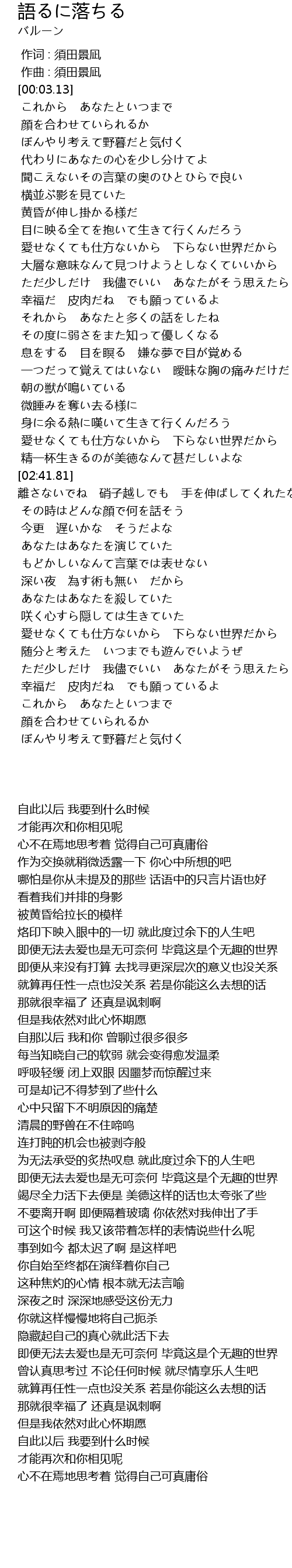| [03:37.15] | 随分と考えた いつまでも遊んでいようぜ |