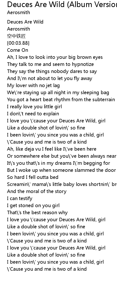 | [02:00.99] | I love you \'cause your Deuces Are Wild, girl |