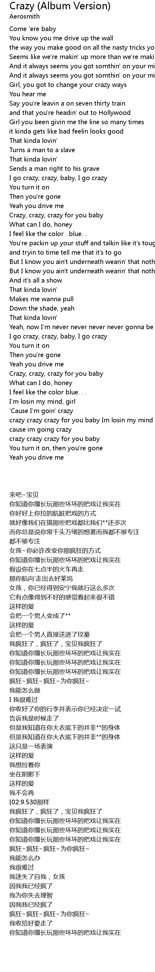 crazy crazy crazy for you baby |