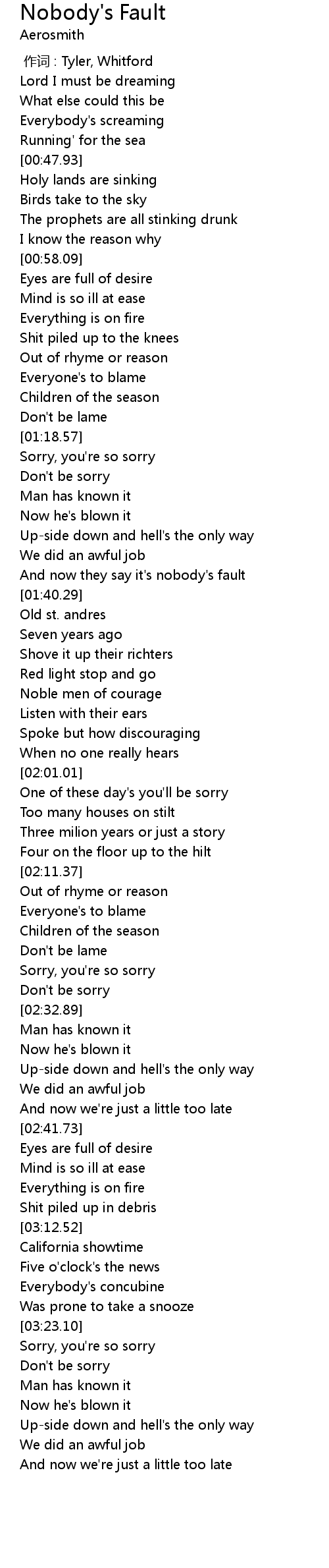 | [01:38.63] | And now they say it' s nobody' s fault |