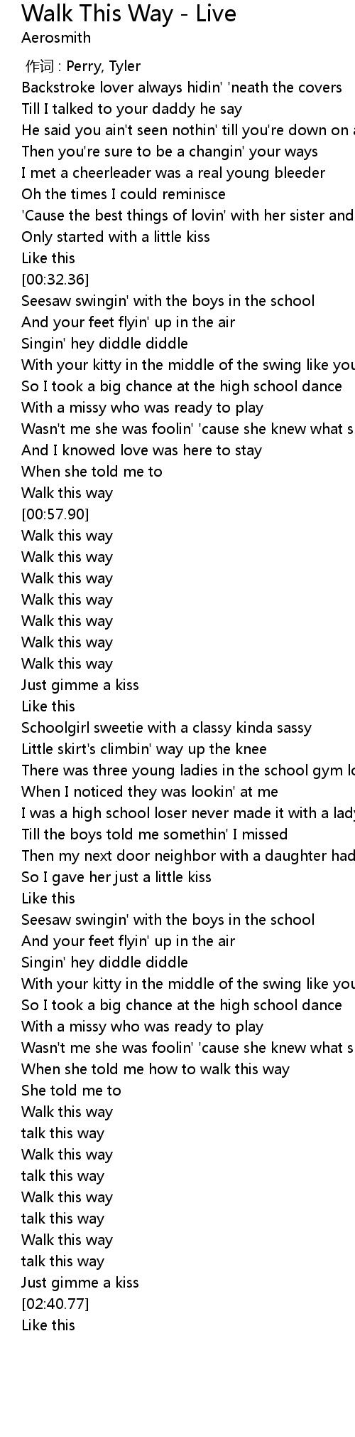 | [00:59.75] | Walk this way |