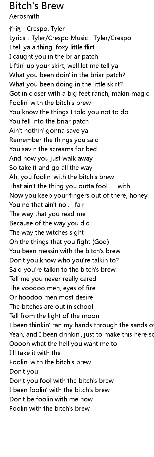 | Said you' re talkin to the bitch' s brew | |