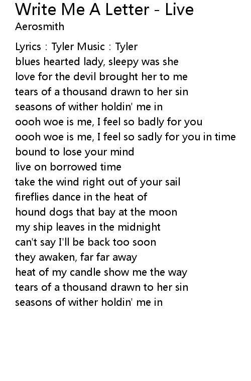 | Song | Write Me A Letter - Live |