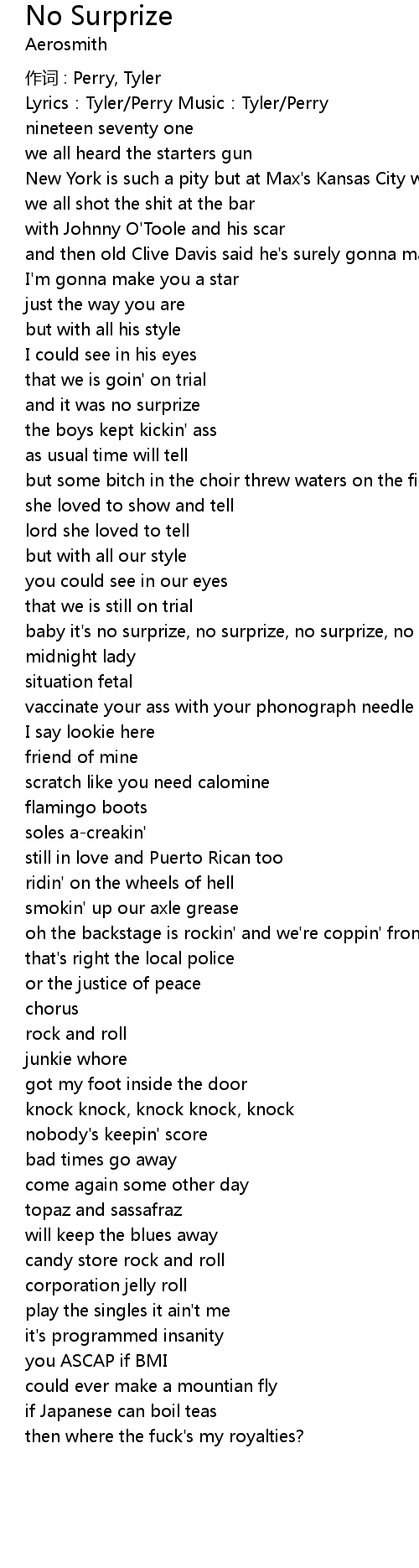 | baby it' s no surprize, no surprize, no surprize, no surprize | |