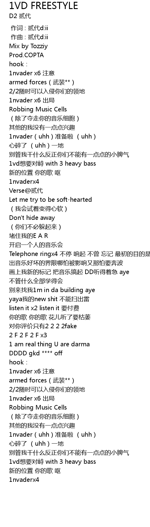 | [01:49.136] | 1vd想要对峙 with 3 heavy bass |