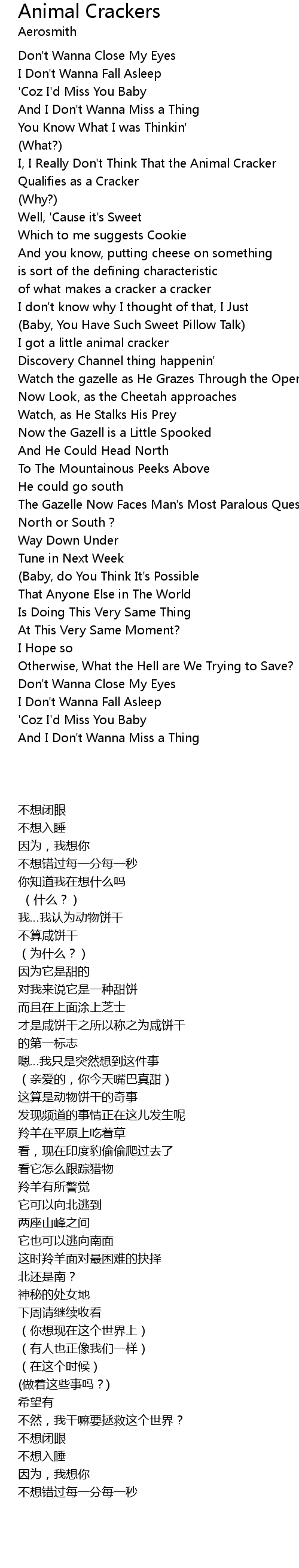 | [00:18.17] | I, I Really Don' t Think That the Animal Cracker |