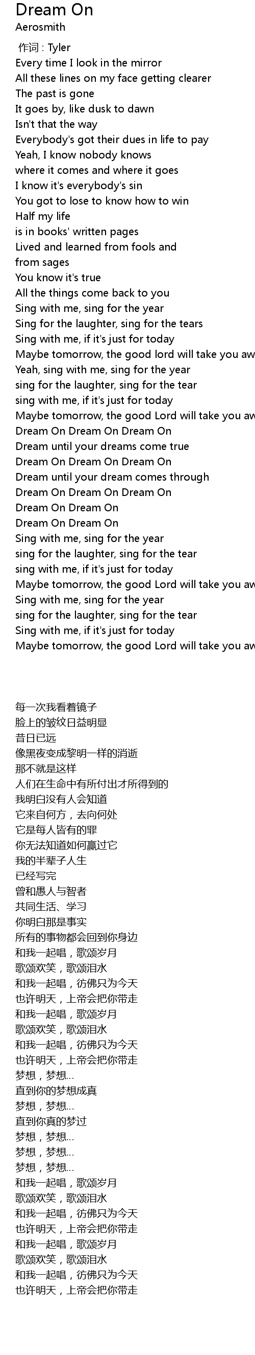 | [03:28.570] | Dream On Dream On |