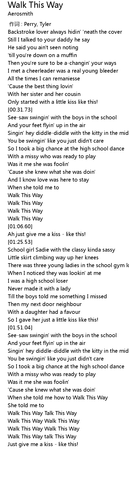 | [02:29.93] | Walk This Way talk This Way |