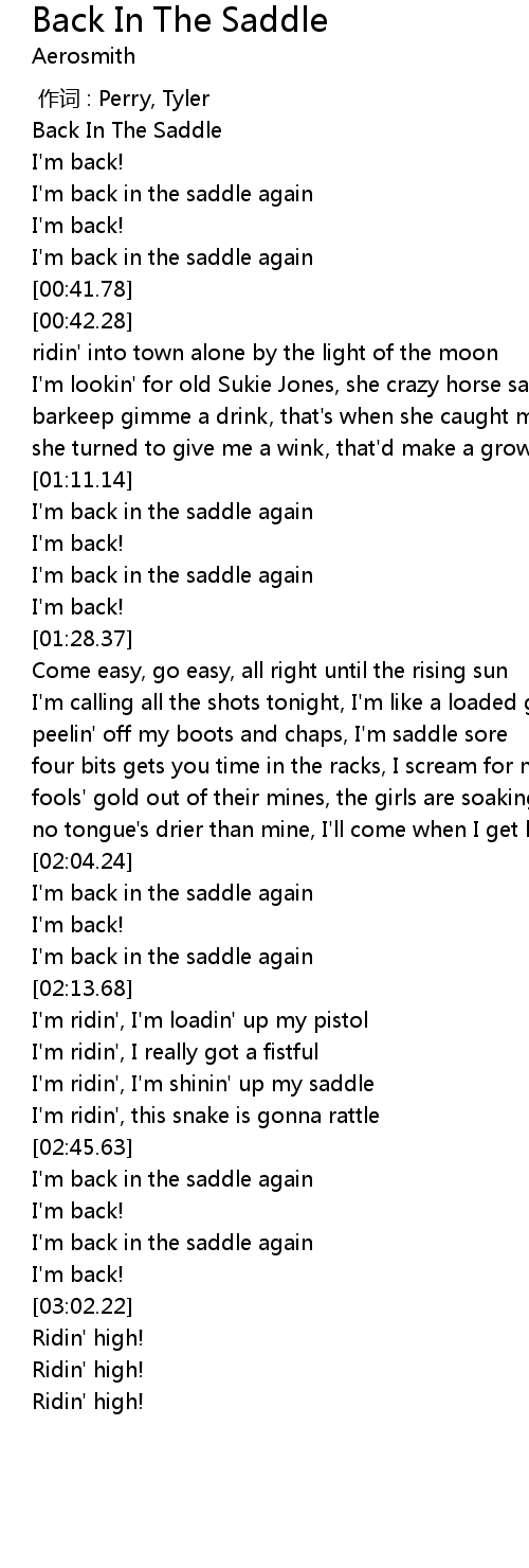 | [00:30.36] | I' m back in the saddle again |