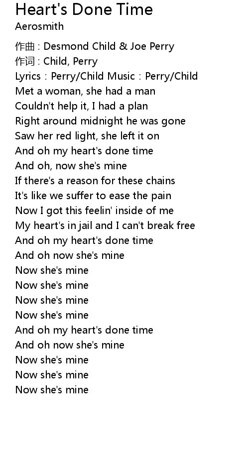 | And oh my heart' s done time | |