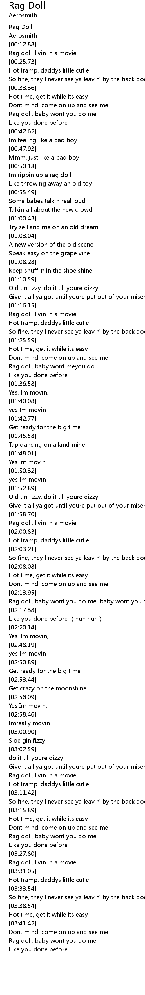 | [01:31.96] | Rag doll, baby wont meyou do |