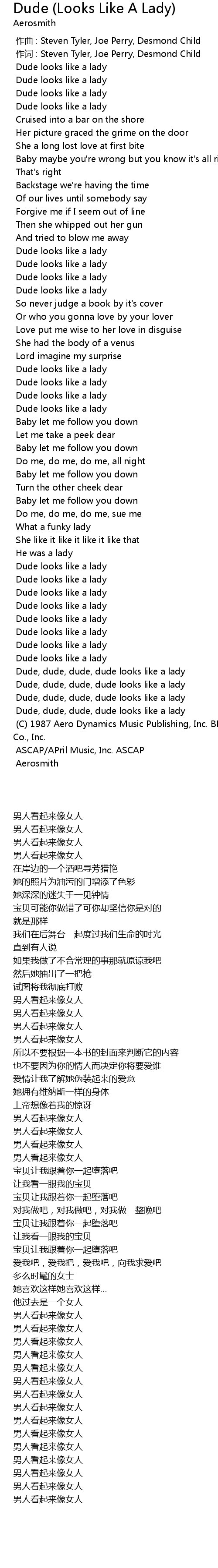 | [03:36.68] | Dude, dude, dude, dude looks like a lady |