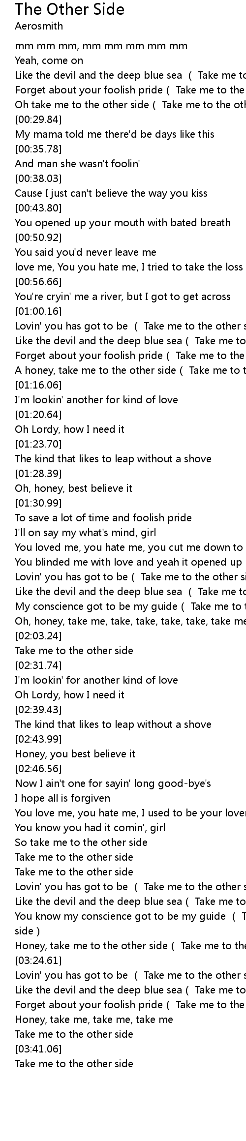 | [03:20.99] | Honey, take me to the other side Take me to the other side |