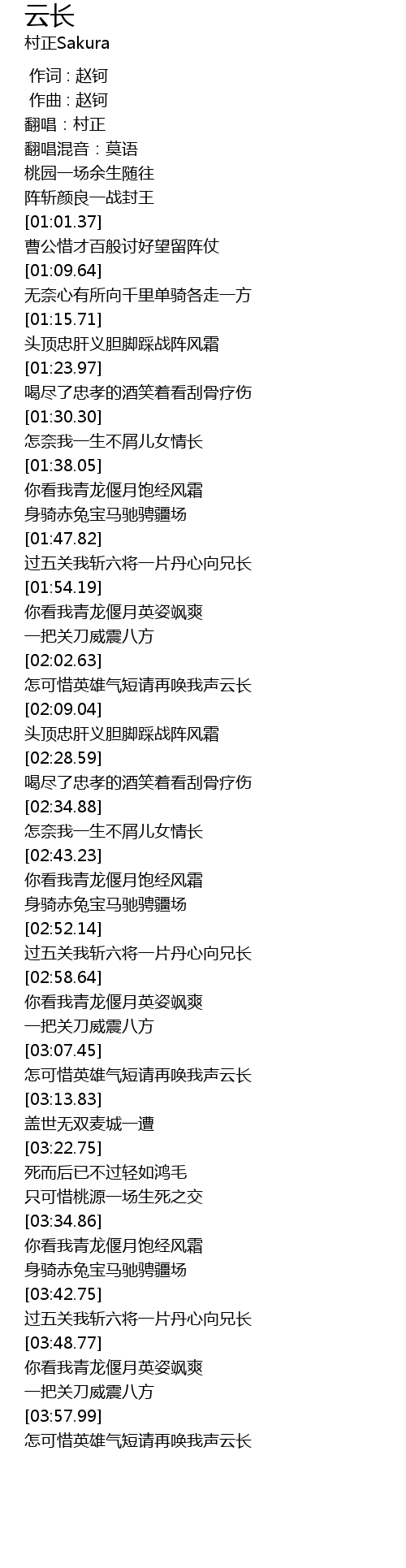 | [03:58.54] | 怎可惜英雄气短请再唤我声云长 |
