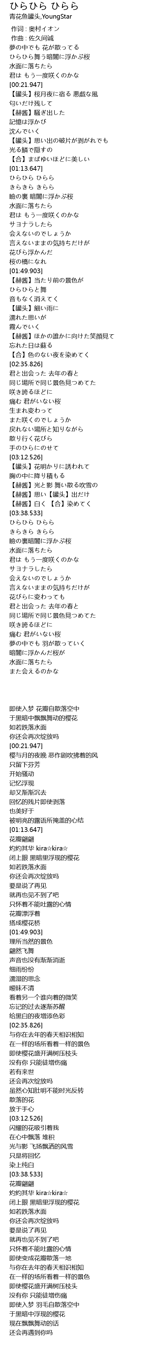 | [00:07.446] | ひらひら舞う暗闇に浮かぶ桜 |