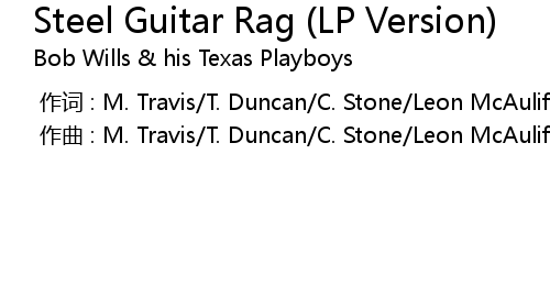 | [00:00.000] | 作曲 : M. Travis/T. Duncan/C. Stone/Leon McAuliffe/L McAuliffe |