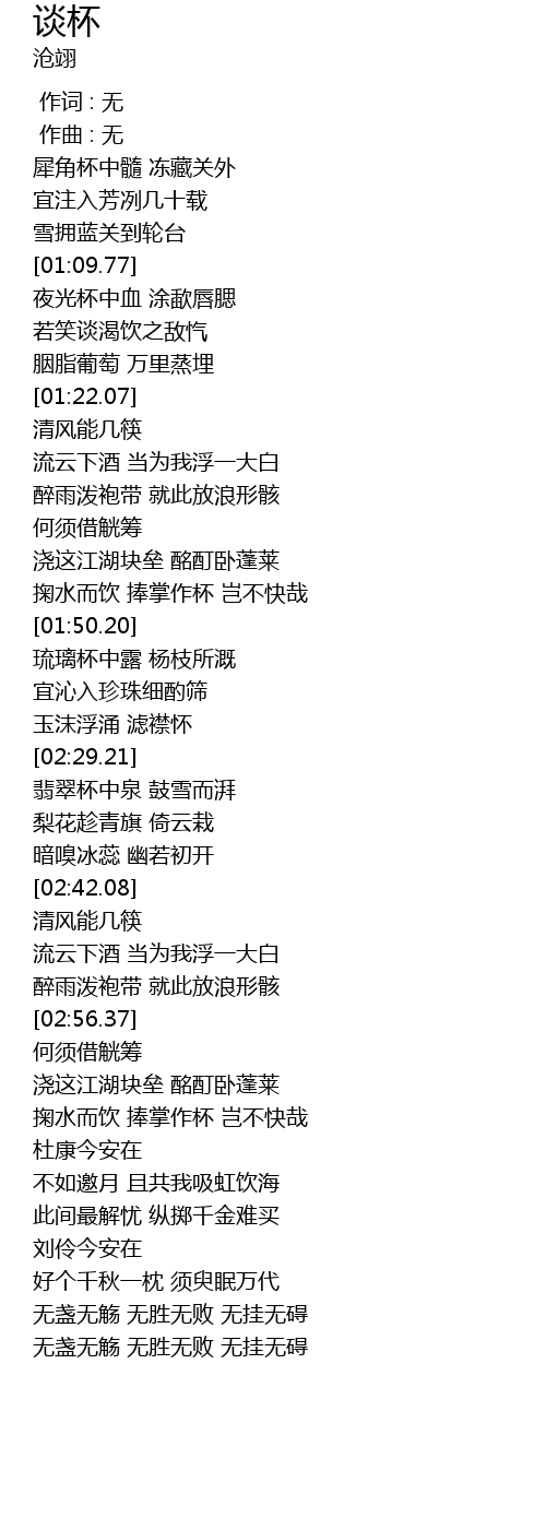 | [01:11.04] | 夜光杯中血 涂歃唇腮 |