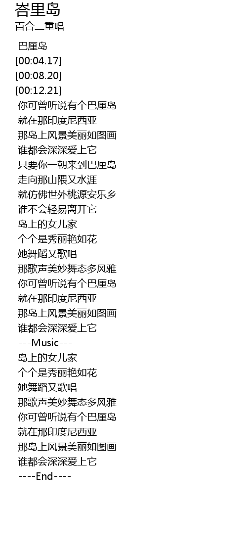 | [00:02.30] | 巴厘岛 |